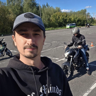 • Радомир — отличный инструктор! Во-первых, не такой дорогой, как остальные (а это тоже важно). Во-вторых, видно, что давно в профессии, даёт интересные упражнения (собственные разработки так сказать), которые мне очень нравятся) Была ситуация, когда не получалось делать контрсвесы, и для достижения этой цели мы шли на понижение сложности, чтобы найти именно то упражнение, с которого лучше всего начать. Именно таким образом дошли до хороших контрсвесов! В общем, за 11 часов обучения получилось достигнуть неплохих результатов, уже сдал внутренний экзамен в своей мотошколе и скоро пойду сдавать в ГАИ. С Радомиром в первый же час получилось быть на одной волне, человек очень интересный и приятный)